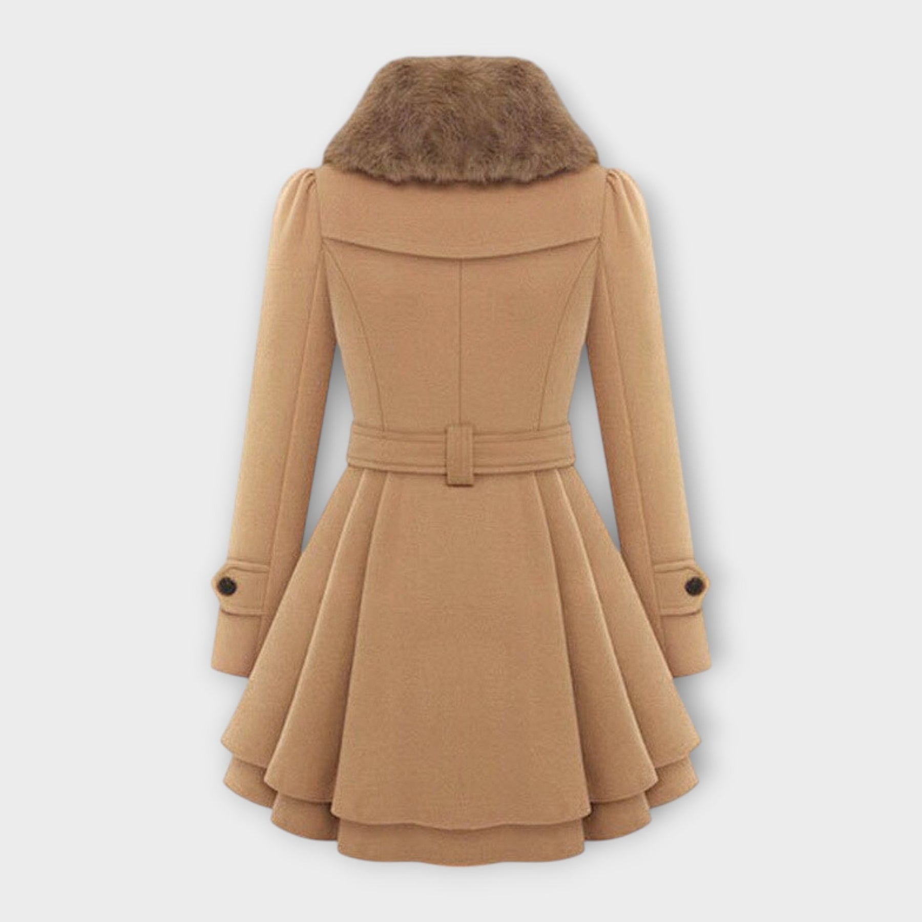 Regal Elegance – Flared Wool-Blend Coat with Faux Fur Detail