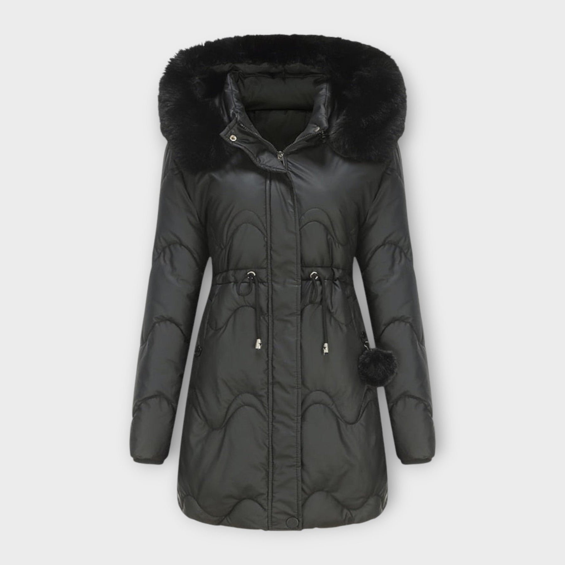 Wrap yourself in sophistication with this beautifully tailored winter coat, designed to combine timeless elegance with practicality. Its flattering silhouette, premium quilted design, and plush trim make it a go-to for polished day-to-night winter styling.