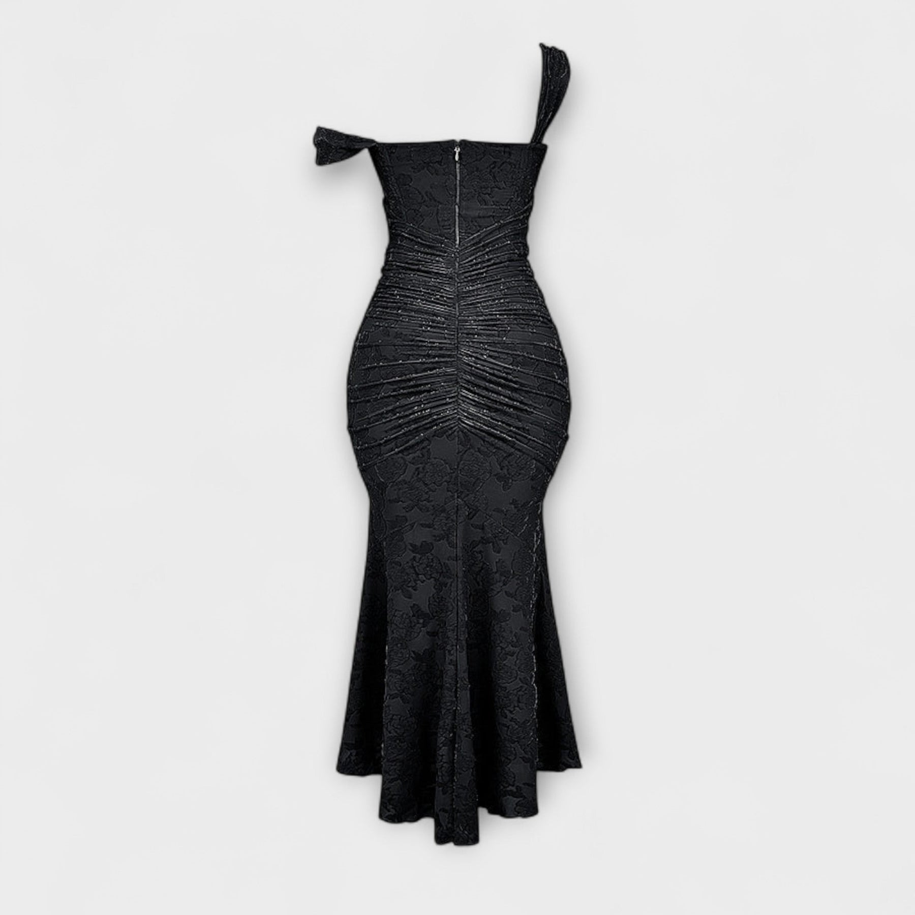 Turn heads at any occasion with this exquisitely tailored maxi dress, designed to flatter and accentuate your silhouette. Featuring a structured corset bodice and delicate draping at the waist, this gown effortlessly blends sophistication with a touch of romantic drama. The subtle high-low hem adds movement and grace, making it ideal for evening events, weddings, or special celebrations.